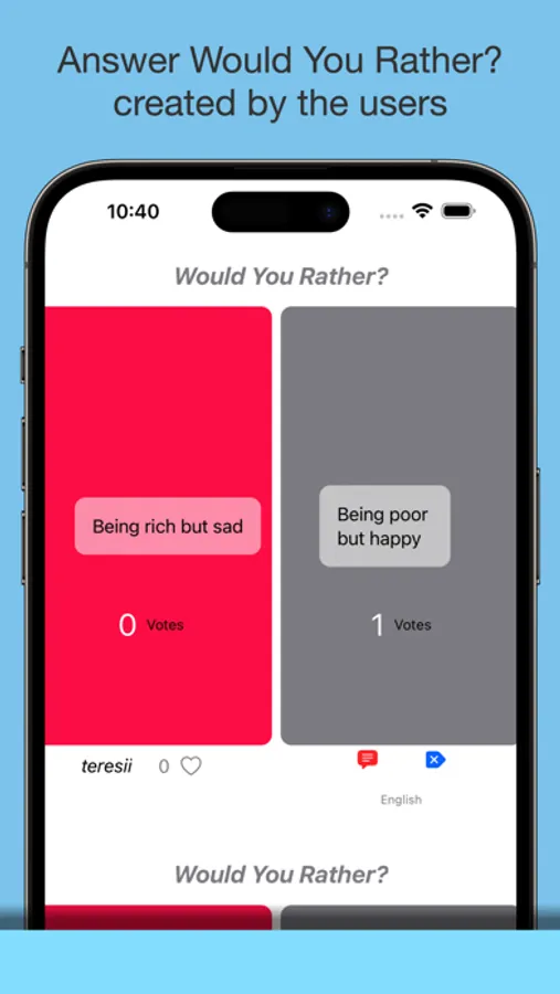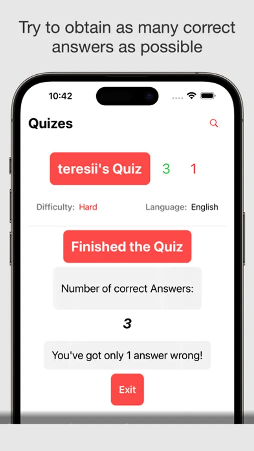 Create everything you want in ImagineIt, you can create Quizzes, Guess The Word, Would You Rather and Yes or No Questions to share them with your friends and other people. Complete Quizzes created by others and try to get the best score, because your score will be shown on your profile view!!