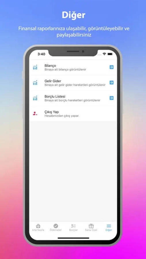 Diğer sekmesinden ise finansal raporlara ulaşabilirsiniz