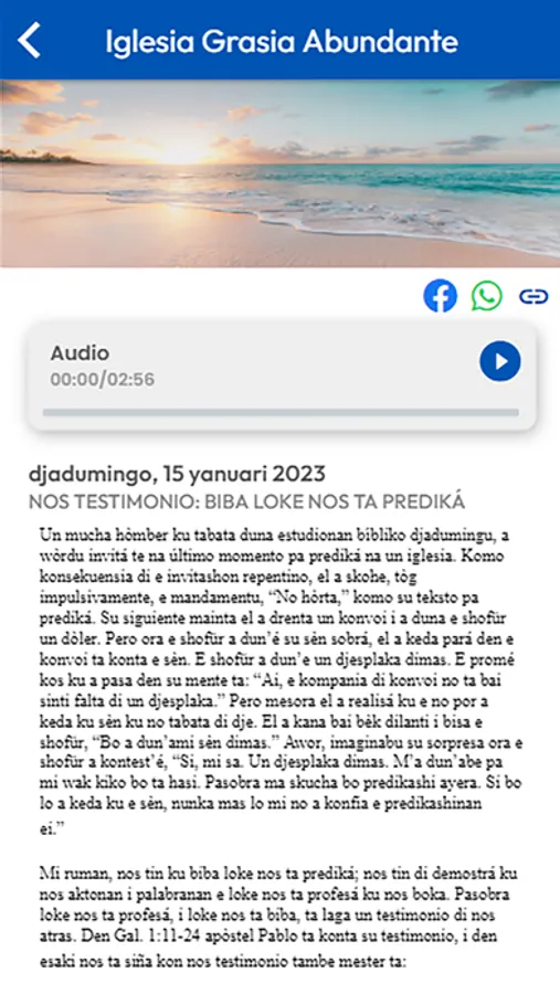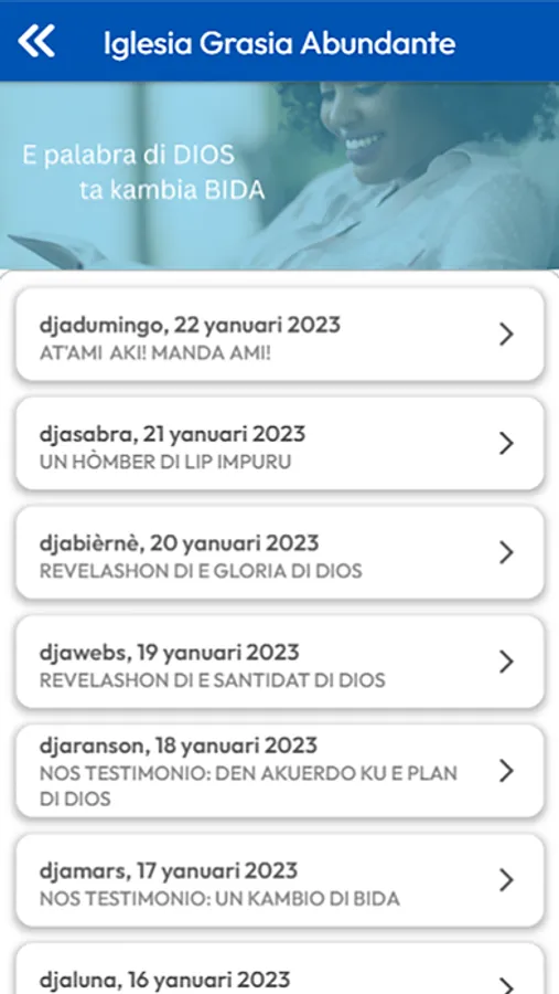 Iglesia Grasia Abundante Daily Bible Devotional App with Audio in Papiamentu.
