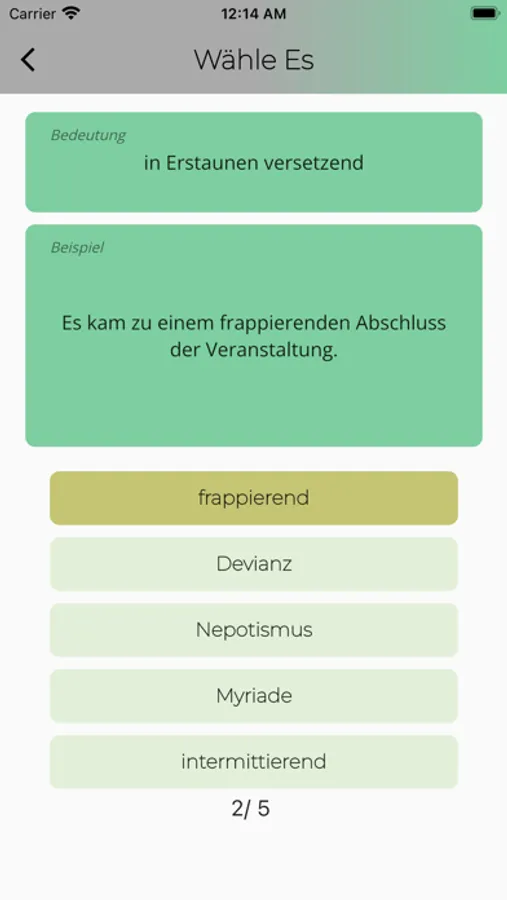 - Übungsphase II - "Wähle es" im Quiz Modus