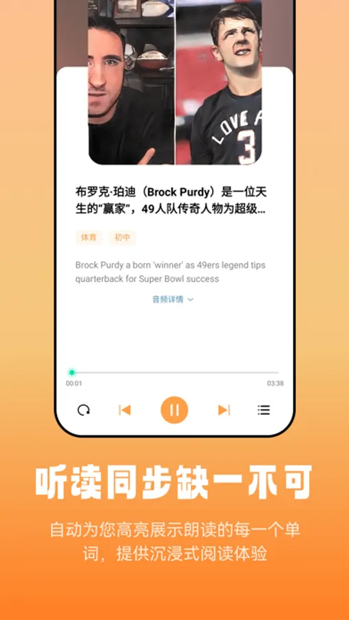- 拥有及时更新的海量阅读和听力库,并提供智能语音高亮跟随功能。