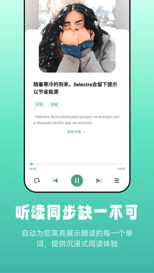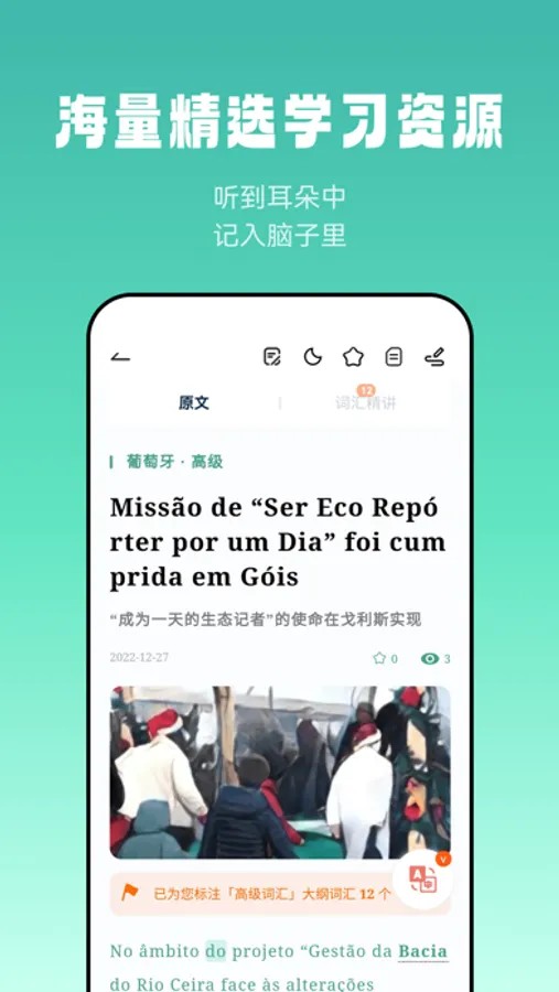 - 全新艾宾浩斯和人工智能练习模式,让你训练阅读听力的同时不知不觉增加葡萄牙语词汇量