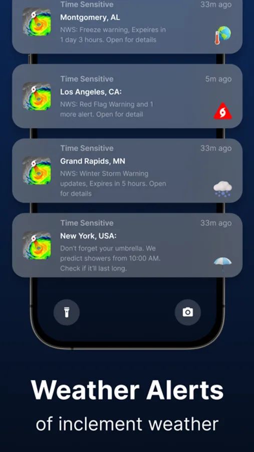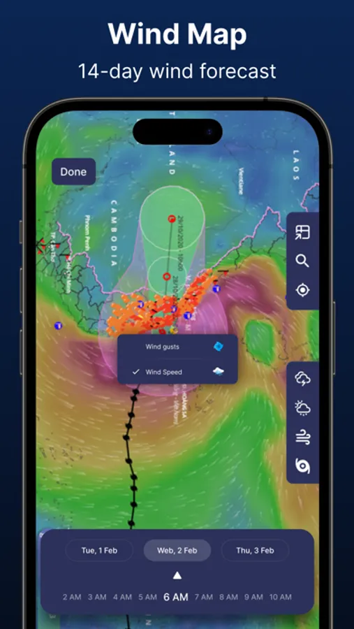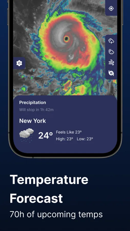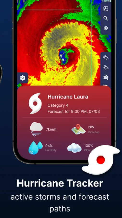 Use high-resolution and colored weather layers, such as those for tropical cyclones (hurricanes), storm cells, and lightning strikes.