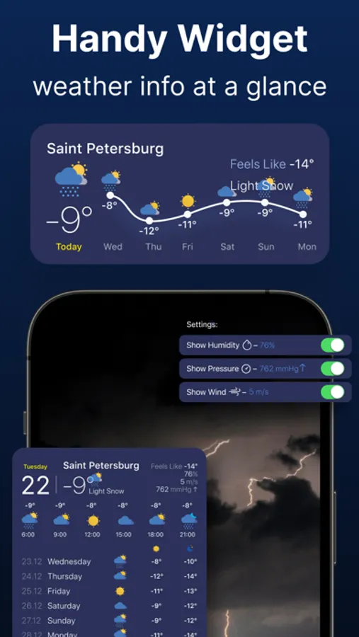 With up to 12 hours of weather layers predicted, information about the moon and sun's influence on regional and worldwide weather patterns from astronomy and the atmosphere as well as animated weather conditions are combined with numerous specific metrics for your favorite locales, including temperature, humidity, pressure, snow, clouds, rain, and wind