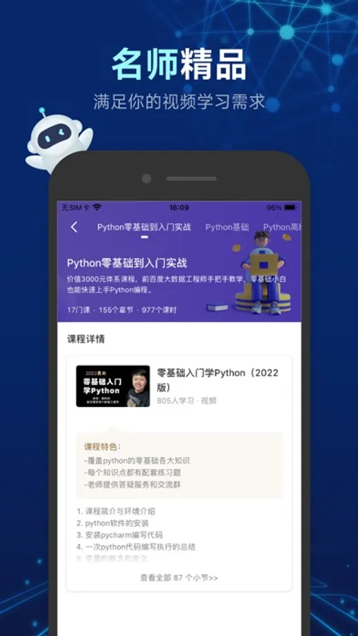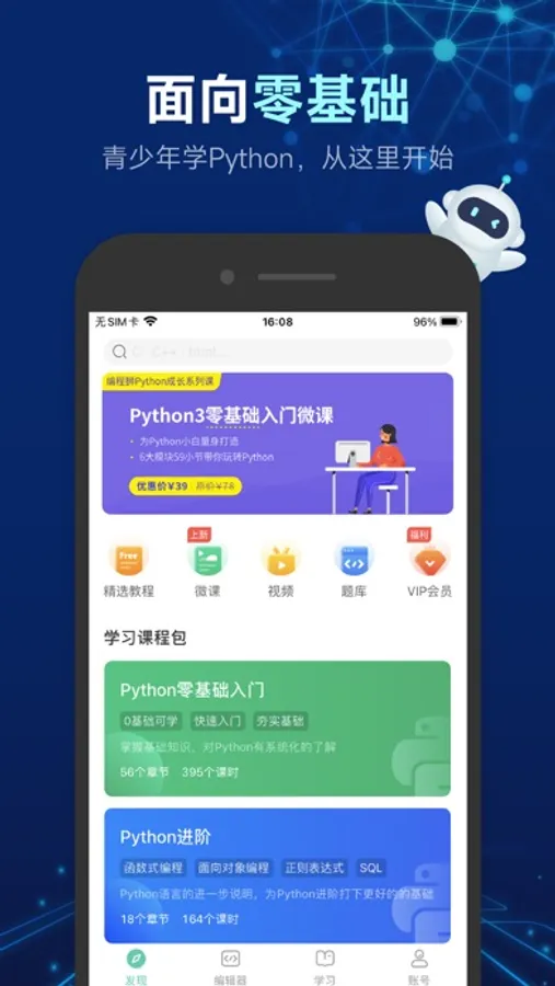 Python少年编程狮,一款专注于 Python 初学者的学习应用。我们涵盖了青少年考试和程序员就业方向的所有 Python 编程课程内容,并努力帮助初学者提高逻辑思维、计算思维和创造性思维能力。开始您的 Python 编程之旅吧!