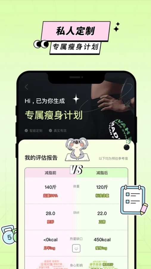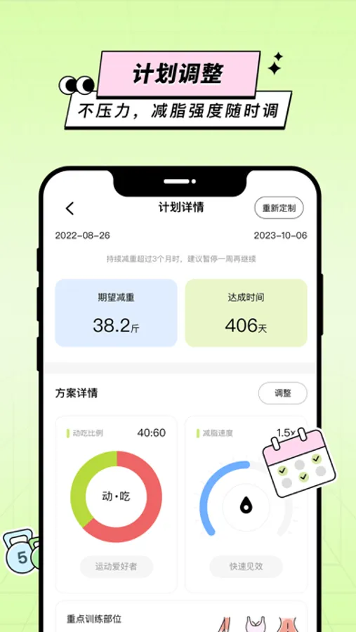 不用天天运动,在为你制定的休息日与运动日里合理饮食加适当运动消耗身体热量,用热量缺口达到健康瘦身目的。