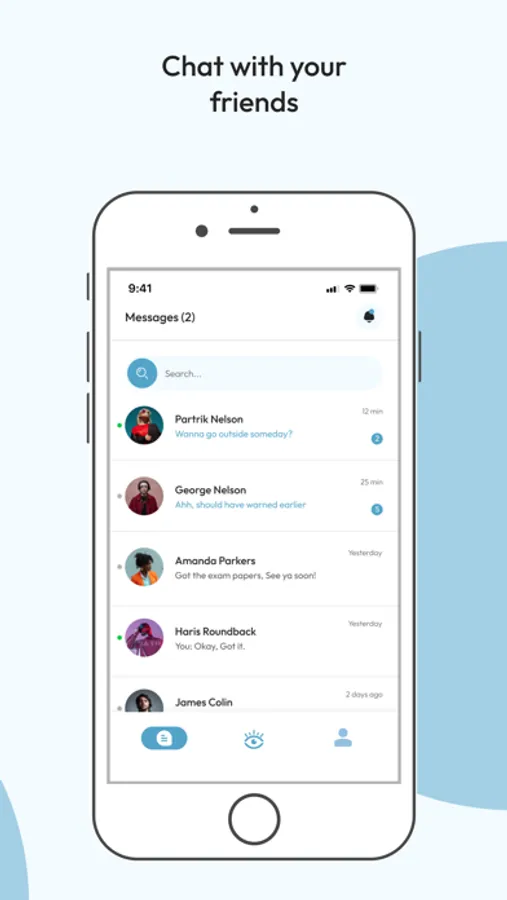 Current Tab: Provides users with a list of other users within a 100-foot radius of them. There are situations where people want to connect with others near them, but an obstacle prevents them from doing so.