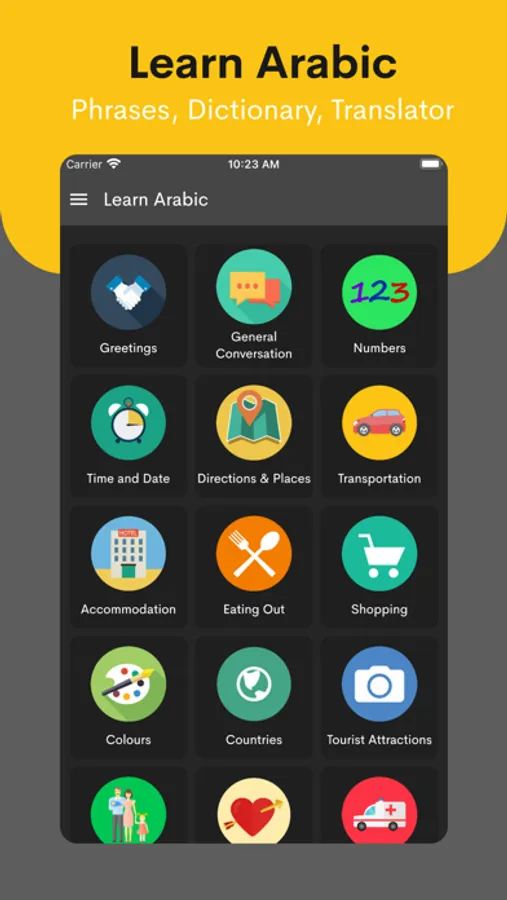 Learn Arabic for Beginner is Designed by experts to help travellers, school students and even if you need fast, easy and quick Arabic learning guide this app is perfect for you.