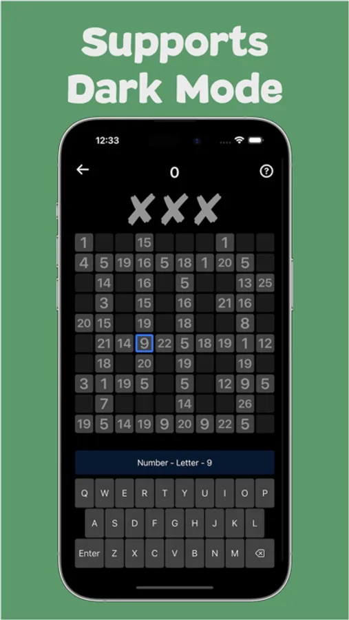- Select between 5x5, 6x6, 7x7, 8x8, 9x9 and 10x10 puzzle sizes