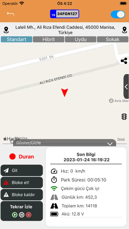 Araç Takip mobil uygulaması ile araçlarınızın gerçek zamanlı konum, hız, alarm bilgilerini takip edebilir ayrıca aracınıza istediğiniz komutu gönderebilirsiniz. Tekrar izleme özelliği ile aracınızın geçmiş seferlerini görebilir, ayrıca istediğiniz tarih aralıklarında rapor hazırlayabilirsiniz.