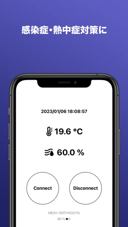 ソニーから販売されている IoT タグ 「MESH」 の温度・湿度ブロックと接続することで、温度・湿度を測定できる iOS アプリです。
