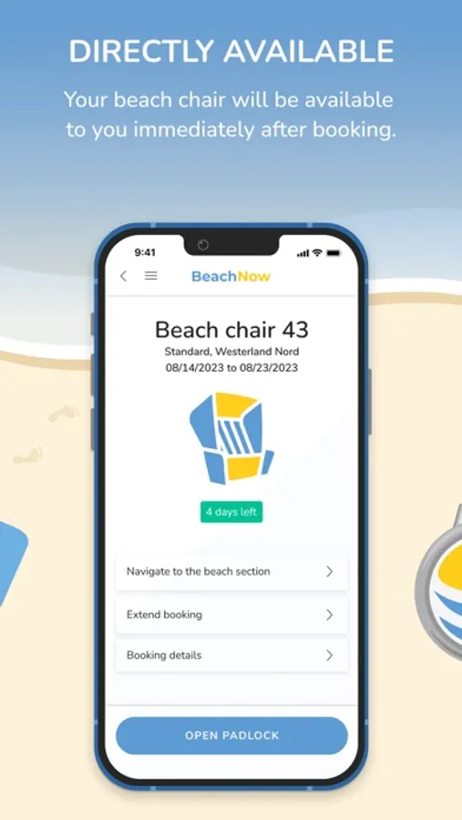 Quick and easy to your beach chair with BeachNow. Book, pay, open the padlock on site and enjoy - all with one app.