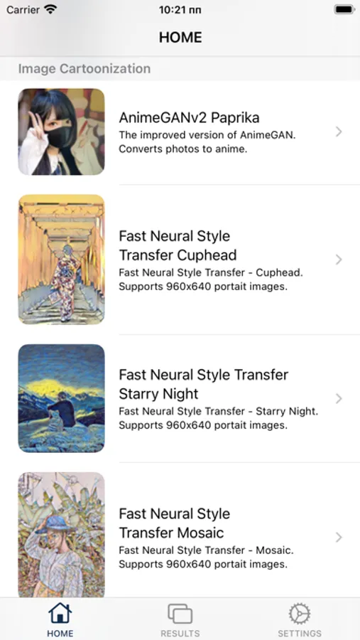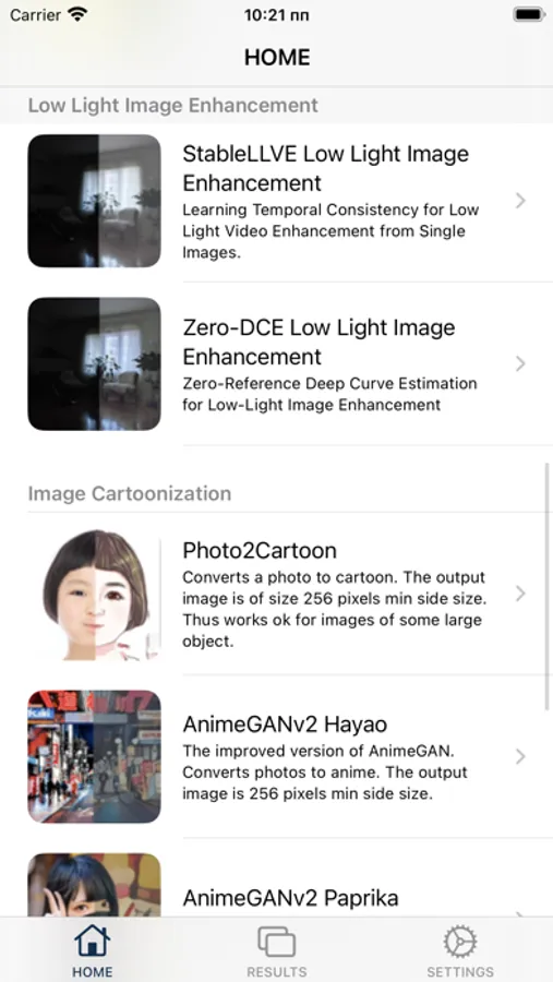 The main idea of the app is to provide a convenient interface to use multiple AI/ML tools on your iPhone.