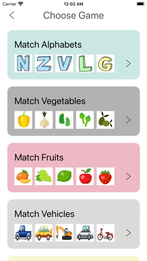 This game is composed of 3 difficulty level, where images are shuffled and places face down on he screen. The player must discover two cards/pictures whether these form a pair disappear, otherwise, are again covered and remittances in their original location on the screen.