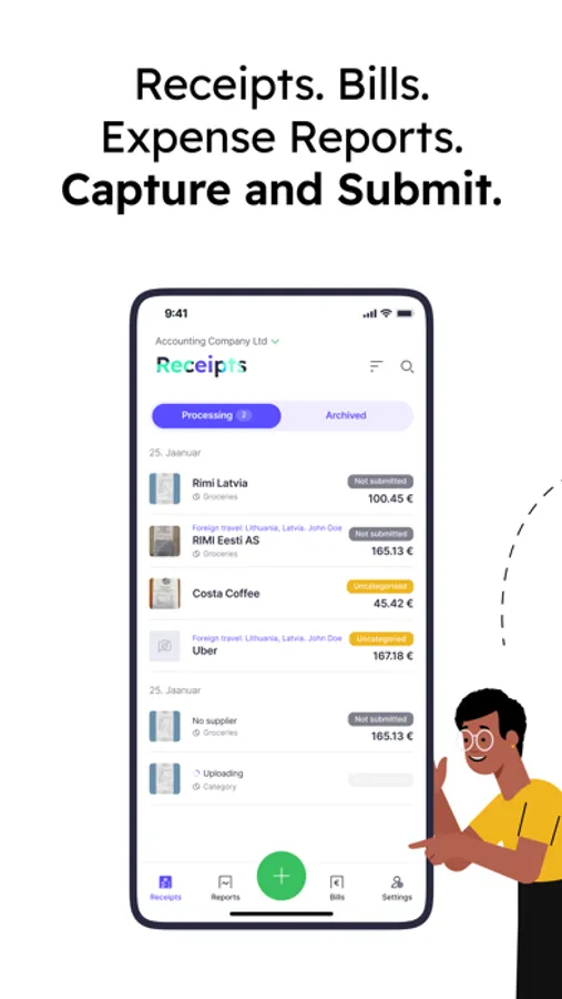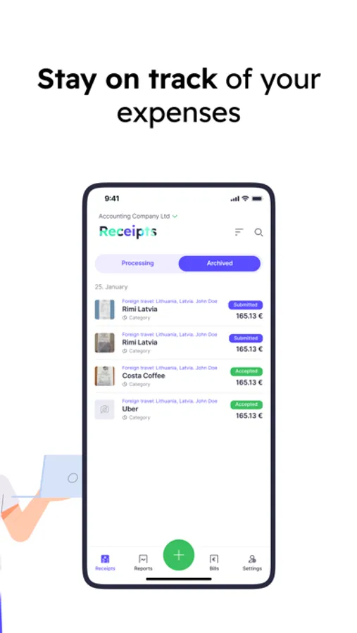 Scan bills and receipts with Envoice mobile app. We store all your paperless documents safely on the cloud without the possibility of losing track.