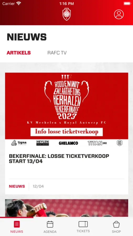 De gloednieuwe RAFC Fanapp, de basis voor elke rood-witte fan! Download de app en krijg toegang tot het laatste nieuws, unieke videocontent en interessante deals. De RAFC Fanapp vormt de basis voor al jouw aankopen bij RAFC via het unieke ONE-account.