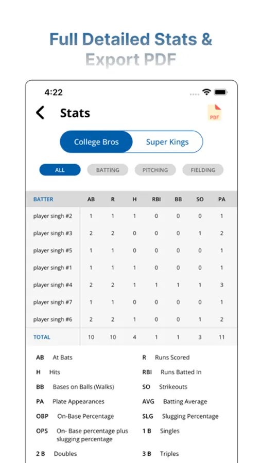 Since 1975 Glover's Scorebooks has been the most trusted name in tracking baseball and softball scores with their official scorebooks. Now, with the new Glover's Scorebooks App, coaches, players, and fans can connect to the game in a whole new way. The Glover's Scorebooks app is an powerful tool for coaches, providing them with comprehensive team management and scoring capabilities. With this app, coaches can efficiently handle tasks like managing team members, game schedules, and easily message players or fans. The Glover's Scorebooks app also allows coaches to keep track of game statistics, including pitch count, pitch type, pitch speed, batting roster, and many more essential statistics. With the Glover's Scorebooks app, players can stay up-to-date on their team's game schedule, locations, and receive real-time notifications from their coaches. Fans can follow their favorite teams to view their game schedules and even live stream games directly from their mobile device!