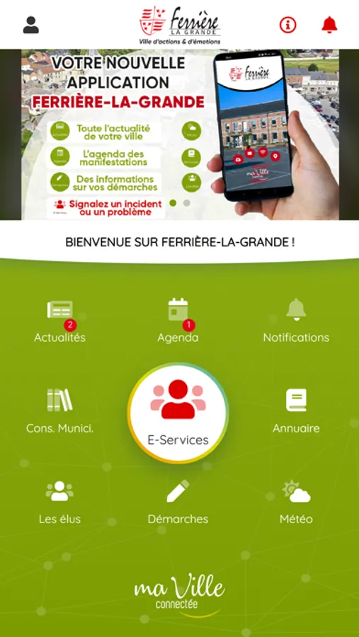 L’application Ville de Ferrière-La-Grande vous permet de consulter l’actualité de votre ville, mais également le calendrier des évènements, les horaires et les adresses des services municipaux, les permanences de vos élus, l’annuaire de votre ville. Un signalement, une demande, une proposition ? Vous pouvez nous les soumettre directement depuis votre smartphone.