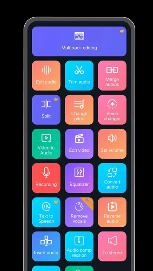 Super Sound is a powerful audio editor. It supports audio editing, cutting, splicing, mixing, convert format, voice changer, convert video to audio and so on.