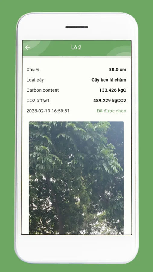 Select species, tree circumference at breast height, which will be cross-checked by project managers in their dashboard management app.