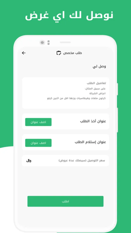التطبيق سهل الإستخدام ، كل ما عليك فعله هو ان تقوم بإختيار الخدمة ، وتحديد سعر التوصيل المناسب لك، وسنقوم بتوصيل طلبك بأسرع وقت. ولا تنسى ان التوصيل مجاني لأول طلب.