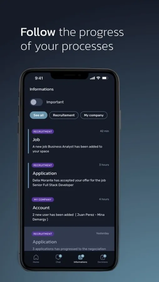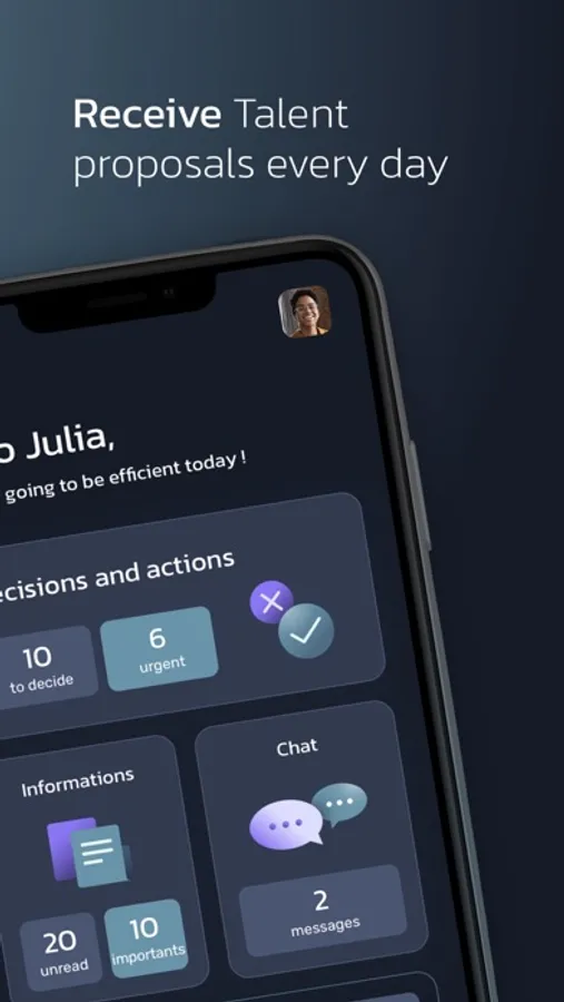 Our intelligent Smart Match Talent technology combined with notifications, will allow you to be reactive on a stream of anonymous or not talent proposals, according to your preferences and those of your company.