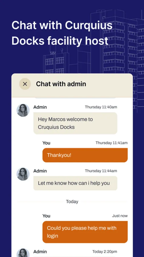 Chat: Any questions about the city? Your apartment? Chat with the facility manager about anything you want.