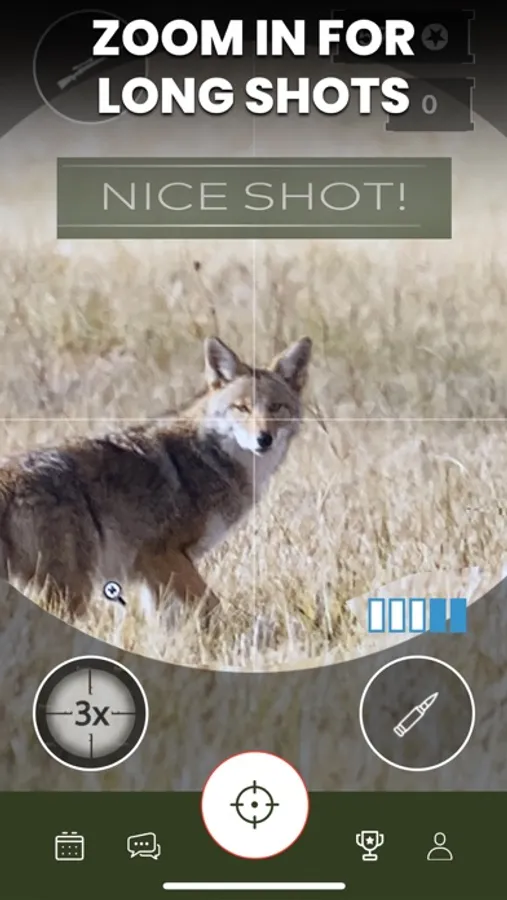 *The Hunt screen is where you shoot pictures, change weapons, and zoom in for the up close shot.