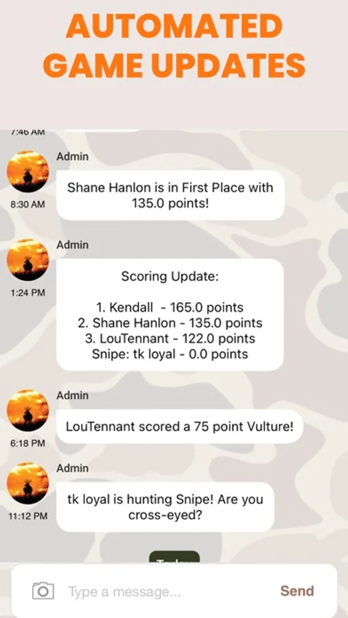 *The automated game chat updates will keep you updated on the leaders, the big movers in the rankings, and who is in LAST PLACE! Don’t be last…..