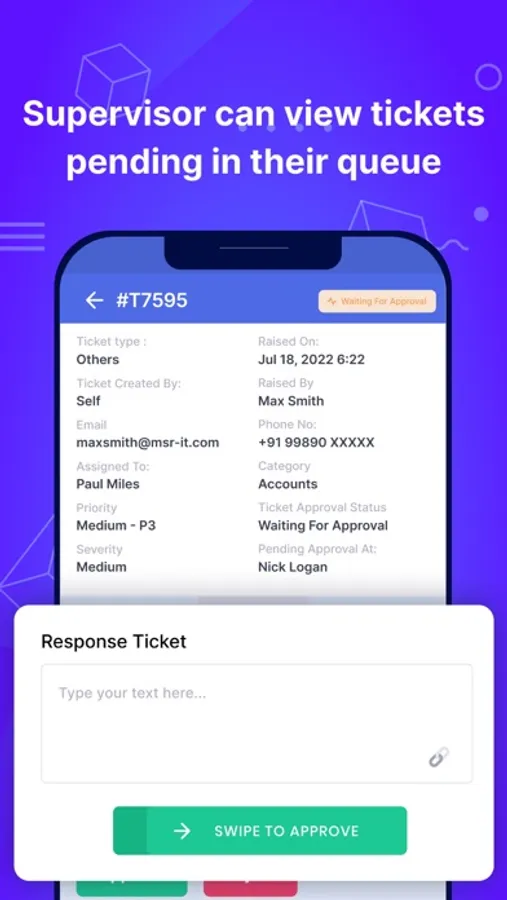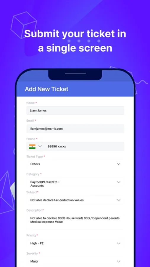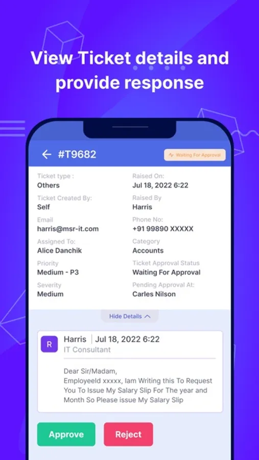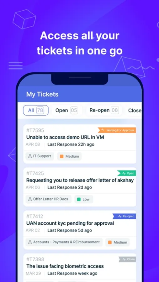 This app allows you to raise and track requests with just a few clicks. It also keeps you notified of incoming tickets by sending you to push notifications.
