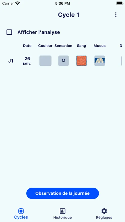 Cette application permet aux jeunes filles de noter les signes de leur fertilité naissante, et aux femmes de faire un suivi quotidien de leur cycle