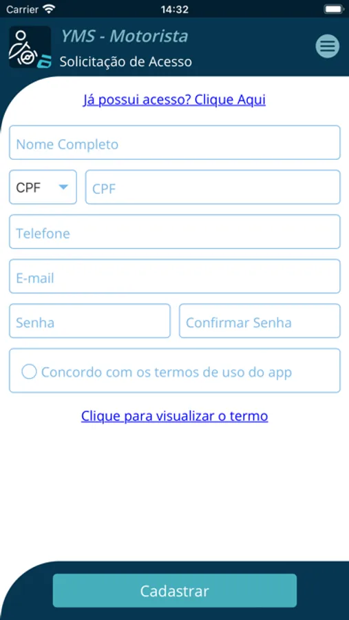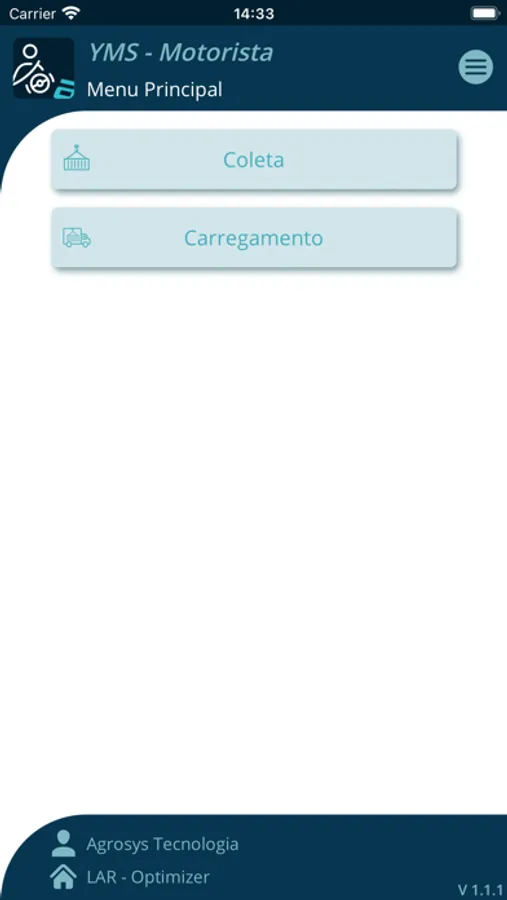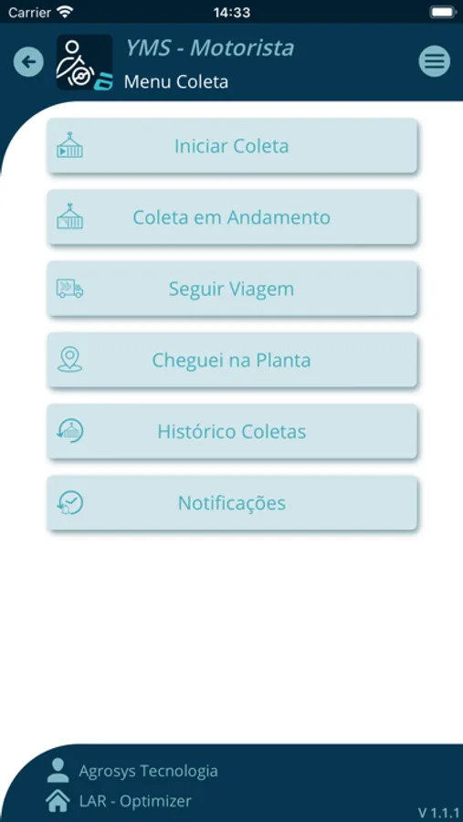 Aplicativo destinado aos motoristas que seus empregadores utilizam os serviços de YMS - Agrosys.