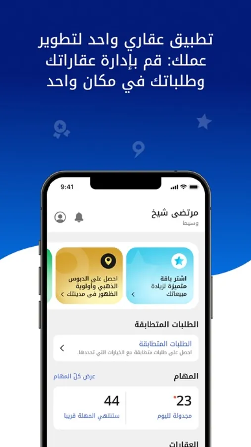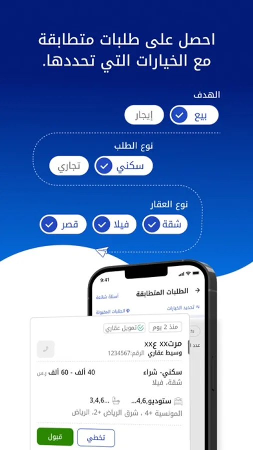 من خلال تطبيق وصلت أعمال سهلنا للمكاتب العقارية والمسوقين العقاريين الوصول إلى قاعدة كبيرة من العملاء بكل سرعة وسهولة بالإضافة إلى: