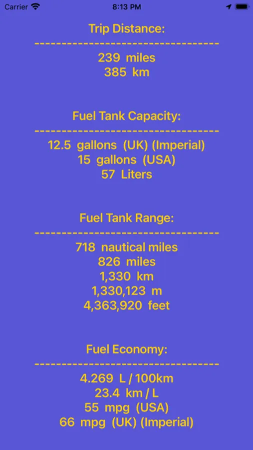 See the Fuel Economy and Fuel Capacity of your Vehicle in Global Units......now you can Relax when Crossing that Foreign Border!