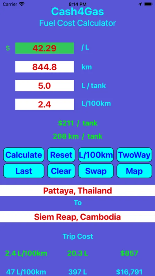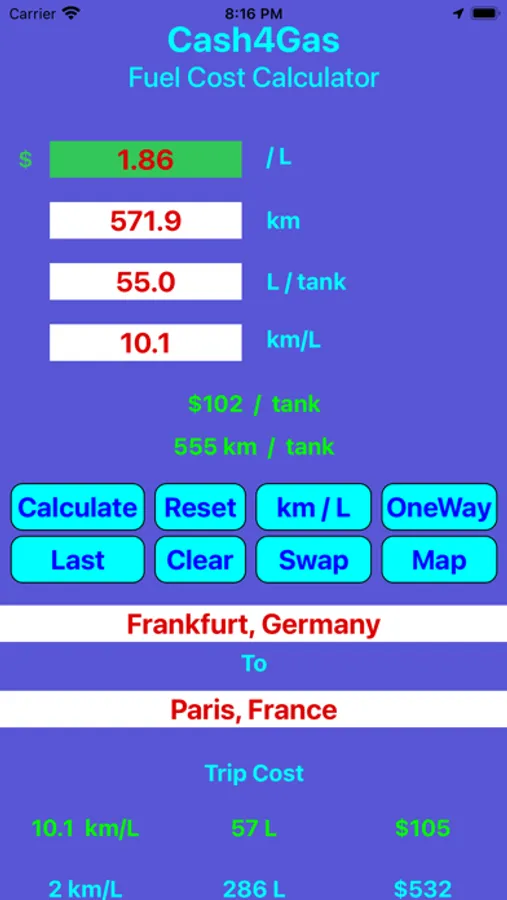 Cash4Gas is your Best Travel Companion for Calculating Fuel Costs and Vehicle Ranges