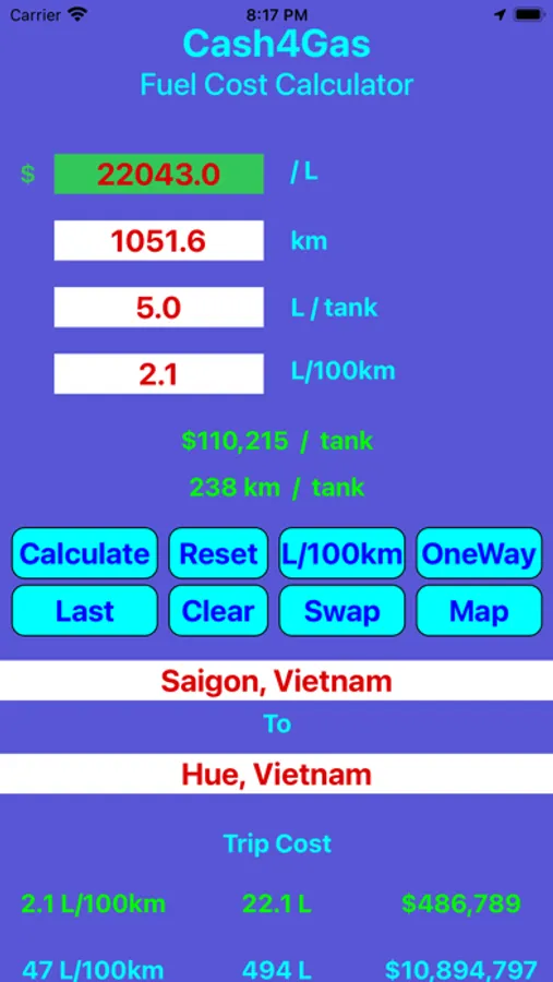 Quickly and Easily Convert ANY Fuel Price into Trip Cost and Cost per Mile