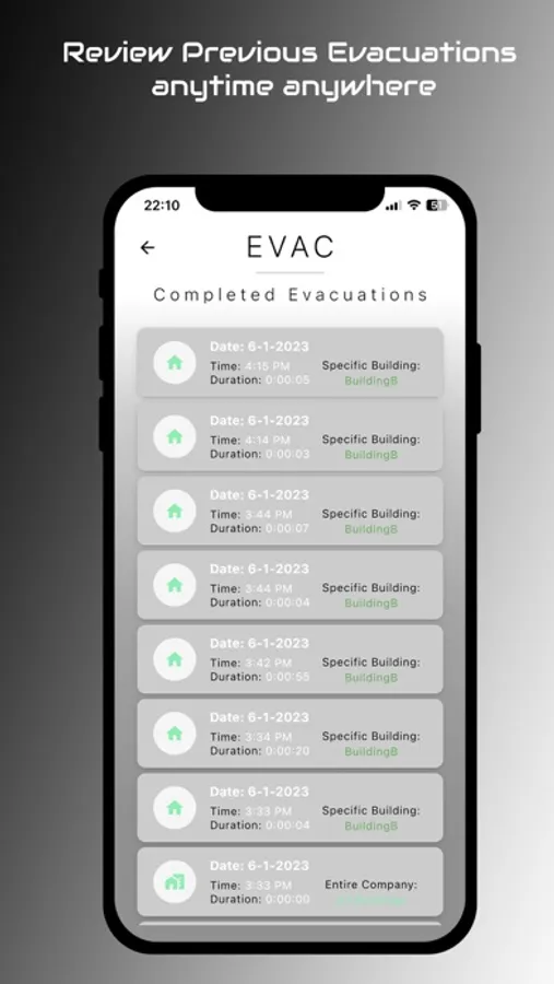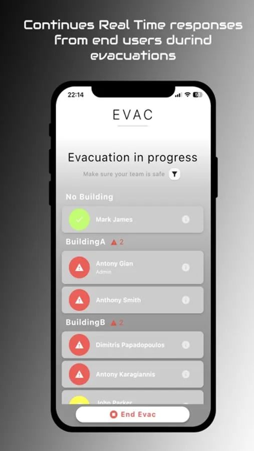 Evacuate single buildings or entire companies with a tap, Instant personnel notifications upon initialization, Real-time responses and data from every employee and visitor, After evacuation reports and many more...
