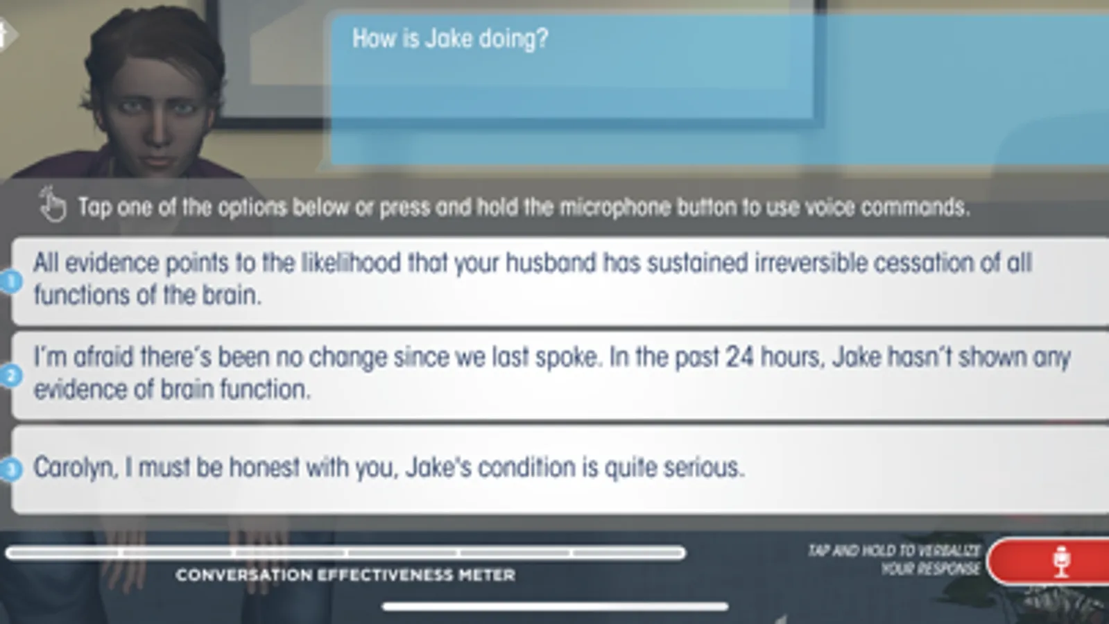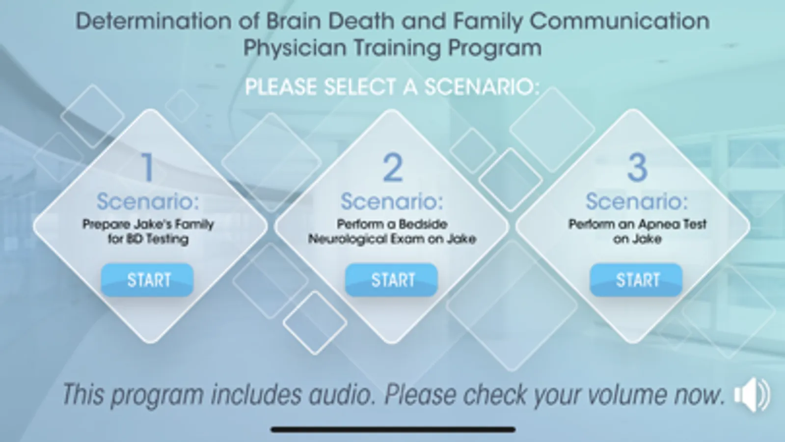 This is the virtual reality companion application to the Determination of Brain Death and Family Communication Physician Training Program. In this portion of the training, the learner is invited into an immersive scenario-based learning experience utilizing their mobile device. These scenarios allow the learner to explore concepts and practice skills that have been covered in the eLearning portion of the training. The learner interacts with a virtual physician (avatar) who guides them through the brain death determination process, including performing the bedside neurologic exam and apnea test and communicating with the patient’s family. The experience is presented in three scenarios. The first begins with the patient’s admission, where you meet and interact with the patient’s wife. Branching technology and a “Conversation Effectiveness Meter” provide immediate feedback as learners select (or speak via Voice Command) language choices to clearly and compassionately explain the patient’s condition and prepare his wife for the brain death evaluation. The virtual physician engages the learner in a variety of interactive tasks designed to apply knowledge and practice critical skills as they perform the brain death neurological examination and apnea test. Please contact Gift of Life Institute info@giftoflifeinstitute.org if you would like to enroll in the program.