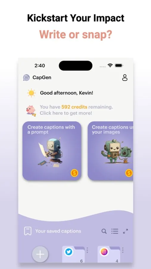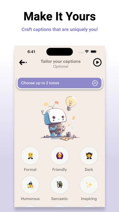 CapGen is a revolutionary AI caption generator app that takes your social media game to the next level. This app doesn't just create captions – it crafts bespoke messages, tailored for your specific needs and goals, for a variety of social media platforms including Facebook, Instagram, Twitter, and more.
