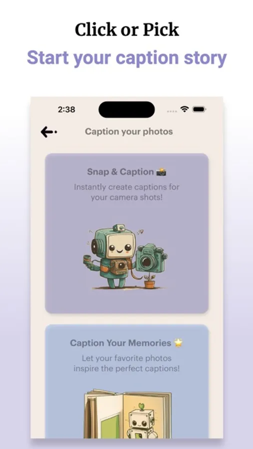 But CapGen doesn't stop there. In a breakthrough development, CapGen now allows you to upload a photo from your album or take a picture with your camera, and the AI will generate a caption based on the image. This innovative feature sets CapGen apart from other apps, providing a unique, intelligent service that understands and interprets your visual content to generate the most relevant and engaging captions.