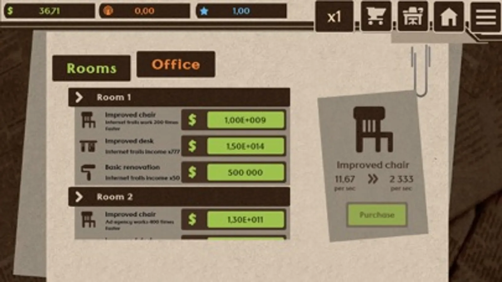 Hire internet trolls, set up your own TV studio, ad agency, or hire lobbyists - in the modern world money is influence, and influence is money. Control them directly by clicking or hire managers. Decorate and upgrade your headquarters and never forget about your own office. Watch your power grow over time and gain access to the more offensive propaganda tools.