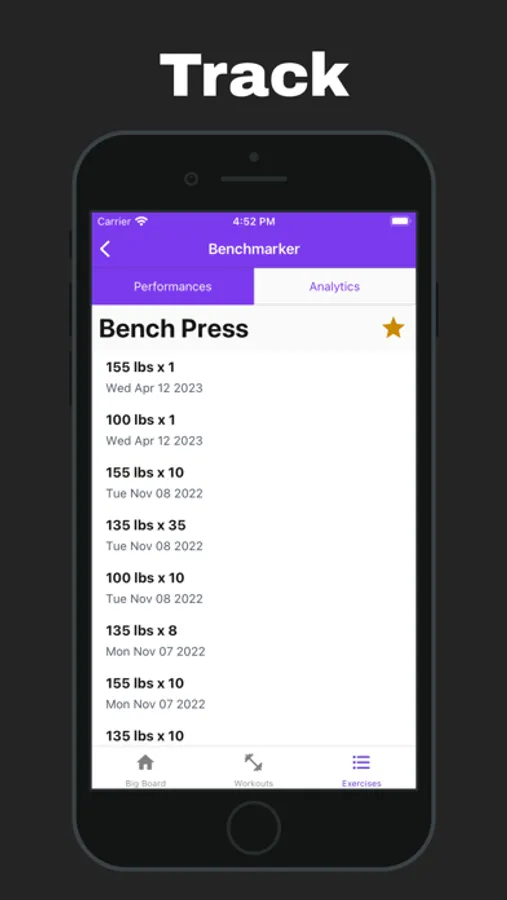 Benchmarker is a fitness and workout performance tracking application that helps users plan, log, and analyze their workouts. The goal is to enable users to accelerate their progress towards their fitness goals. Whether you want to improve your 1 rep bench press, mile time, or just stop spending money on notebooks to log your workouts, Benchmarker is the app for you.