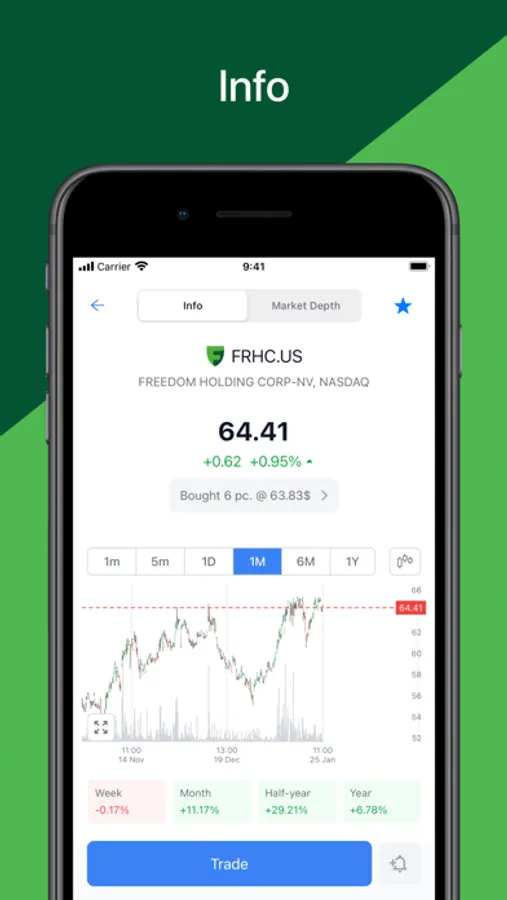 • Work with a demo or full-featured version of the trading terminal (requires a brokerage account opened with Freedom Finance Armenia LLC).