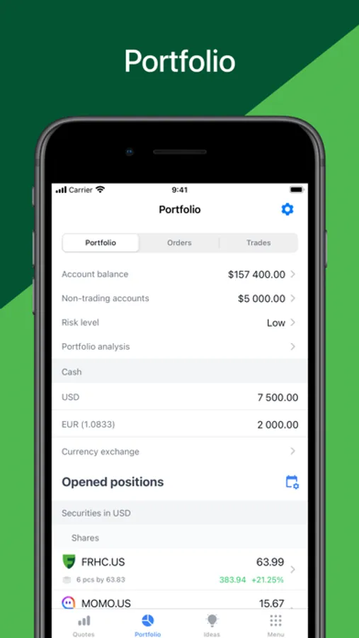 Investing in securities is a way to preserve and increase capital. Earn on the stock market directly in the mobile application from anywhere in the world! *(Internet and cellular connection required).