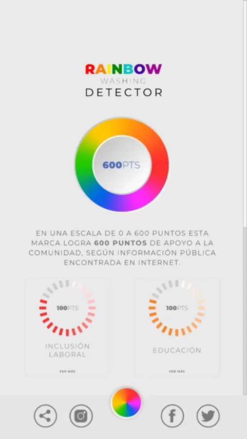 Usando el scanner de la aplicación la App Rainbow Washing Detector en el punto de venta, puedes obtener data y acceso directo a más de 3000 fuentes de información sobre temas clave como la inclusión laboral, el apoyo a la salud o la capacitación entre otros.