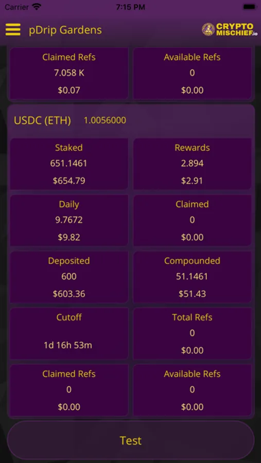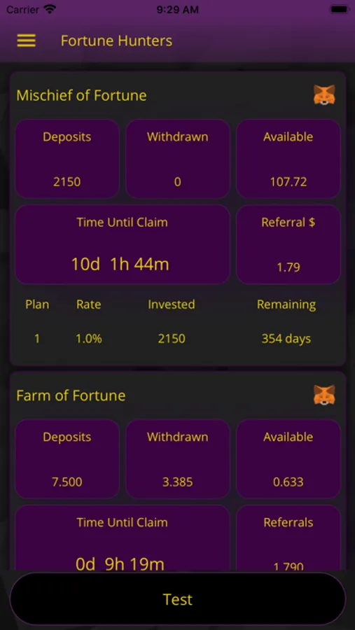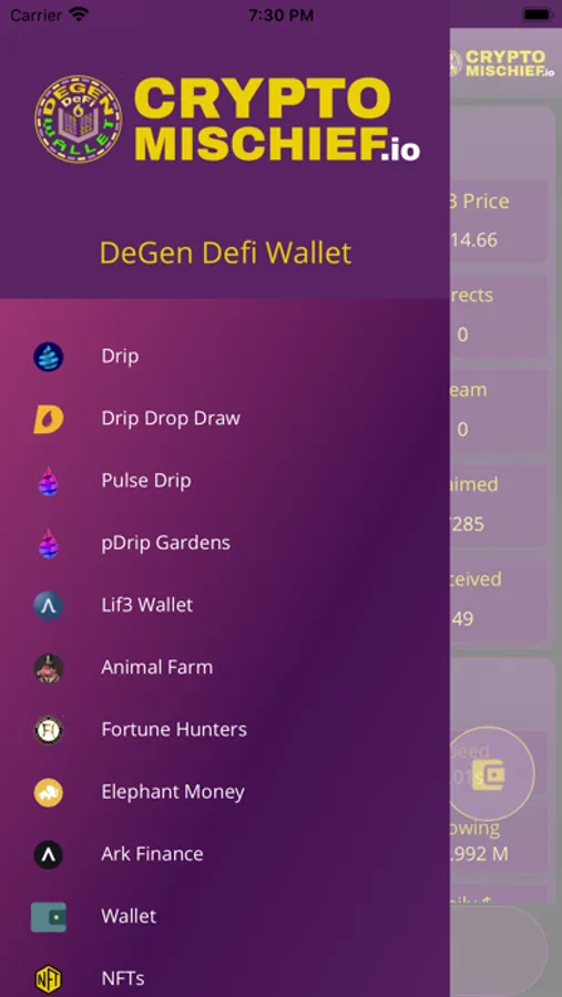This wallet makes a read only connection via an API to the blockchain to retrieve data for a persons wallet for those that are in some of the interested DeFi Projects. These projects include Drip, Fortune Hunters, MAM, Dex Finance, Tomb Finance and Animal Farm.