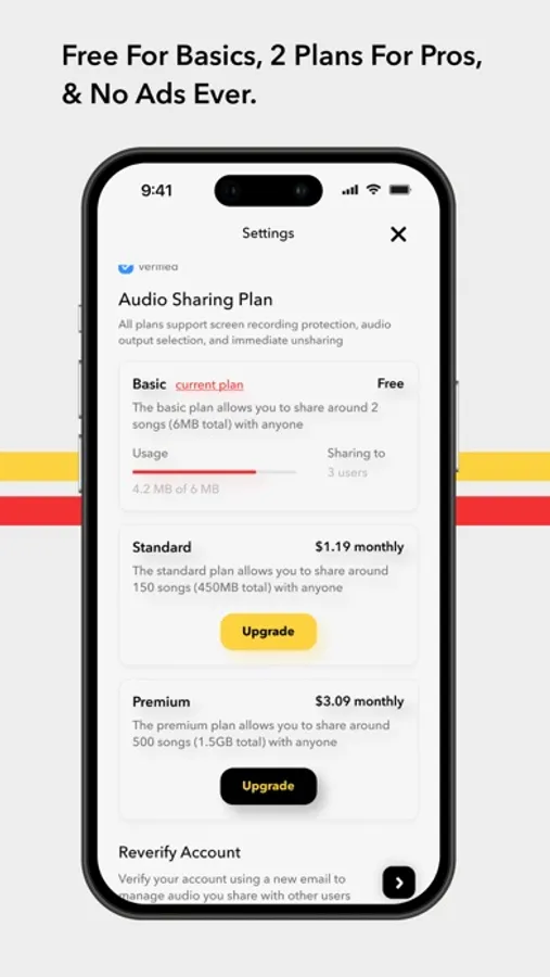 - $1.19 monthly for the Standard Plan (450MB of shareable audio)