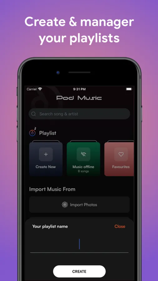 - Beautiful design. Import your favorite Music and Play anywhere. Listen offline & No limits