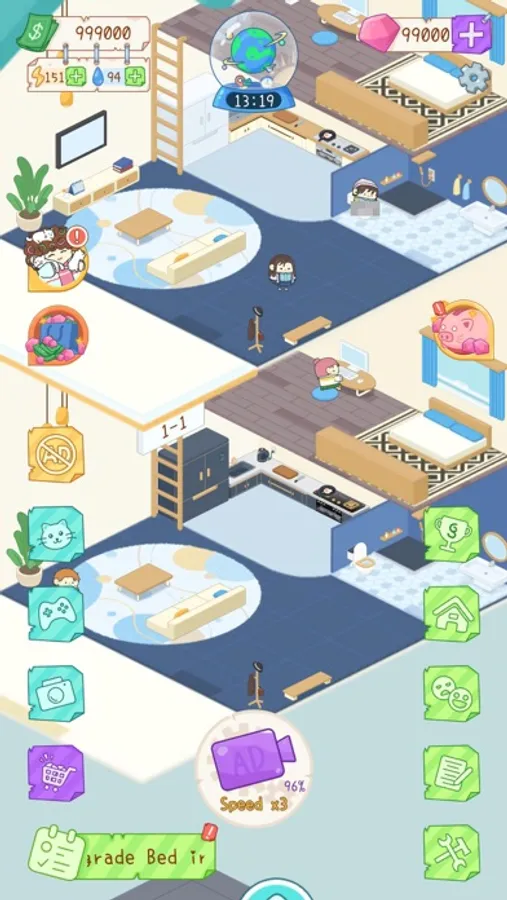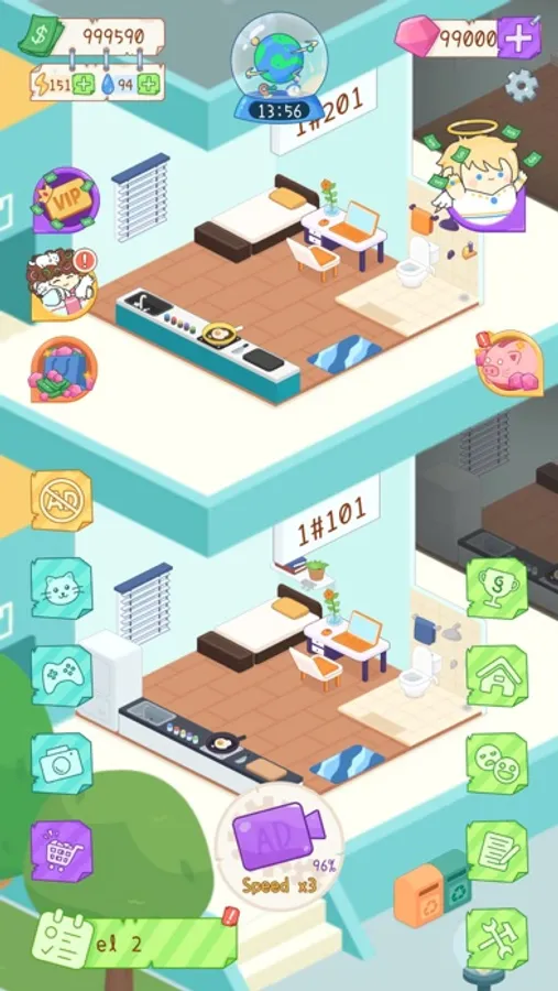 Upgrade room functions, build public facilities, collect opinions from tenants, meet everyone's needs, and try to be a beloved landlord!