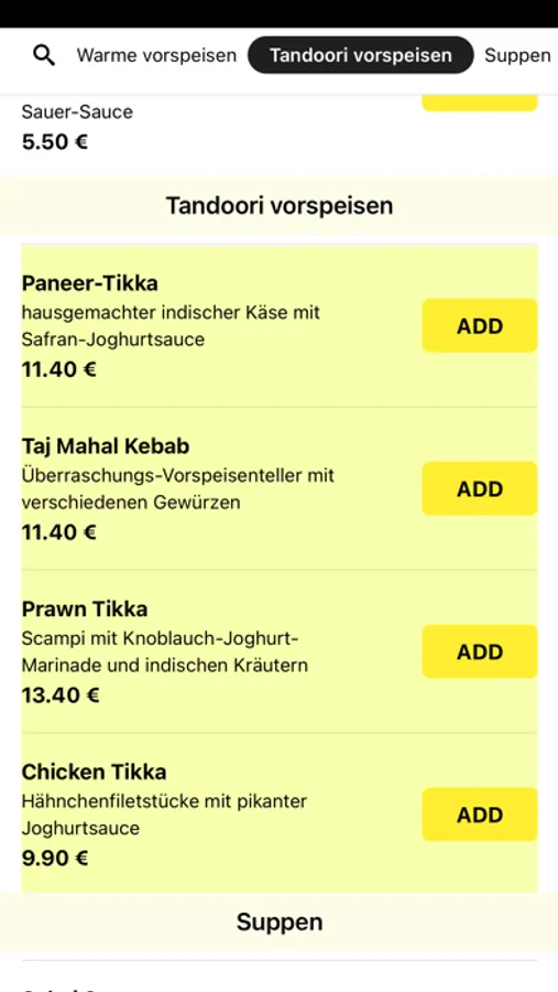- Durchsuchen Sie die Speisekarte des Restaurants und sehen Sie sich alle anpassbaren Optionen im Voraus an